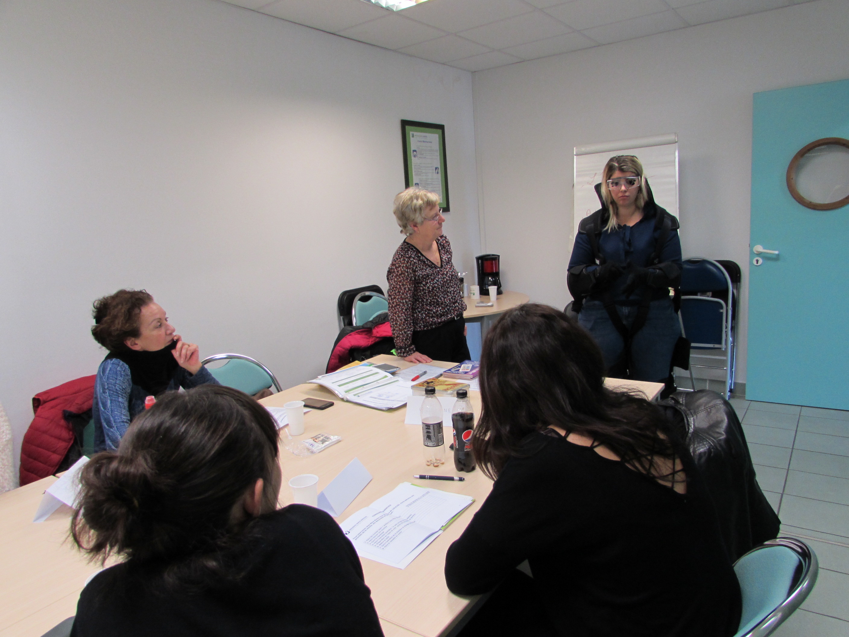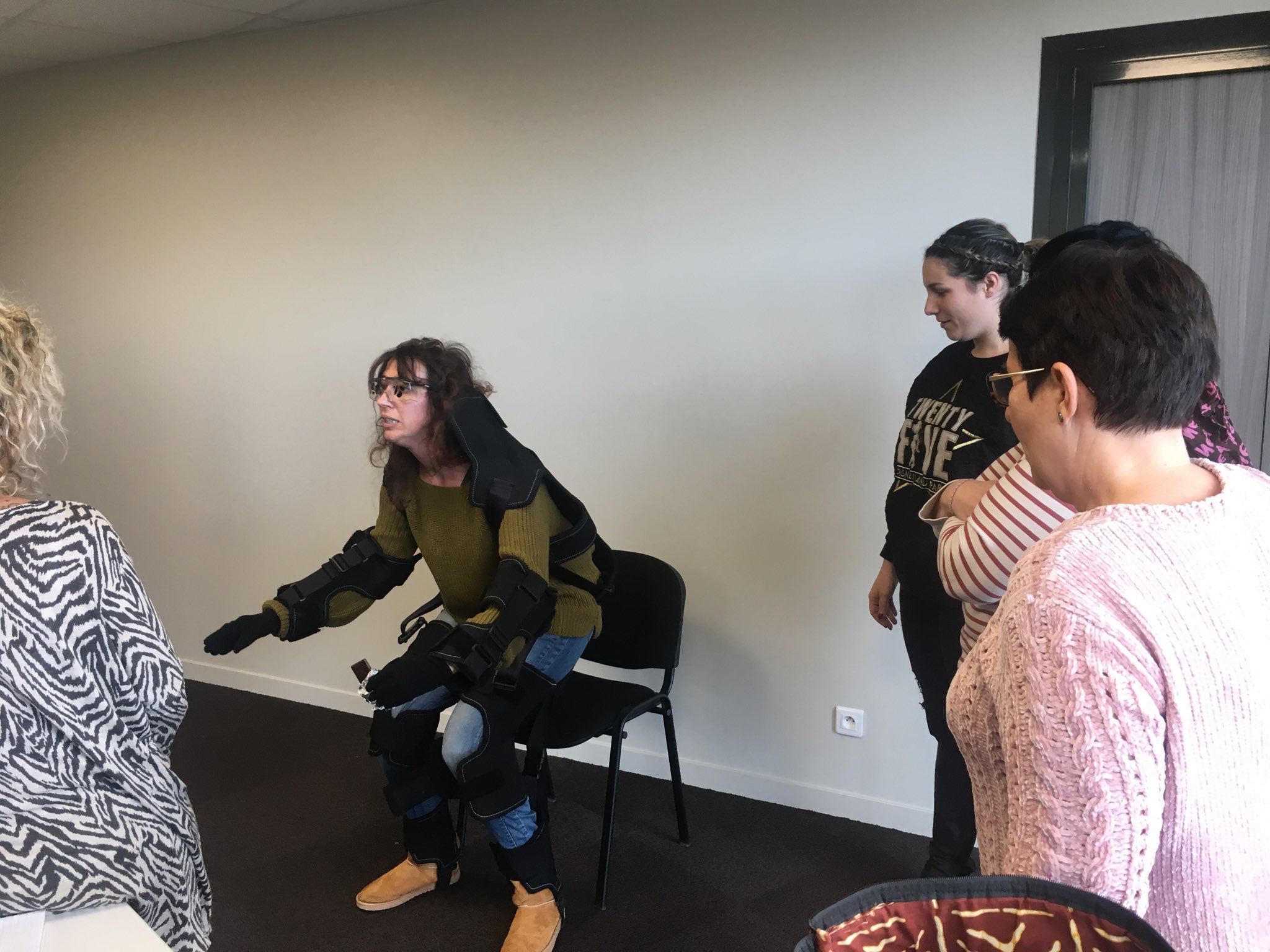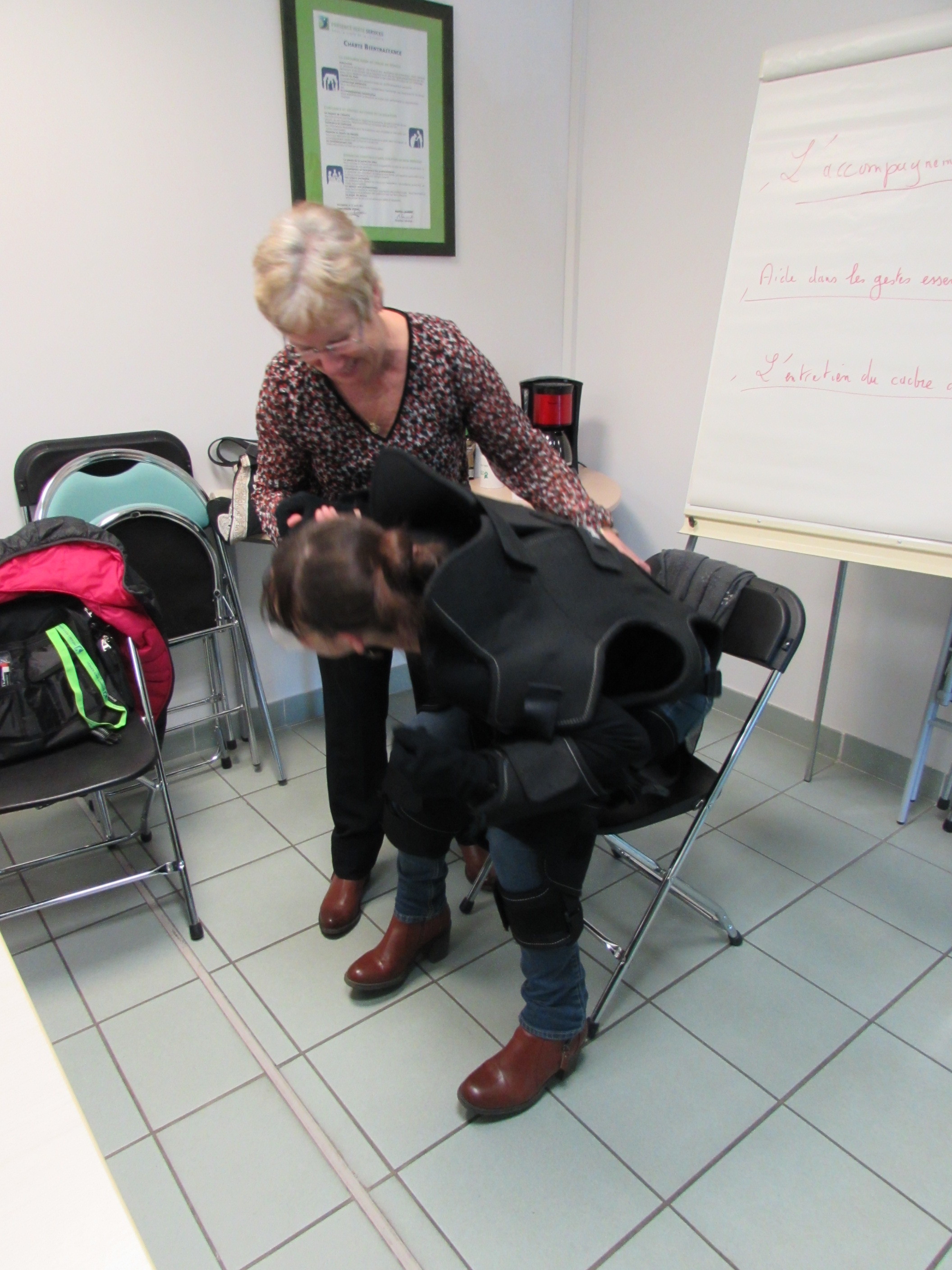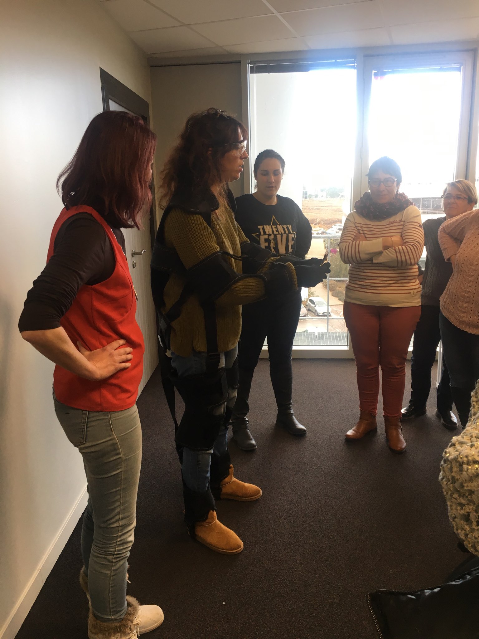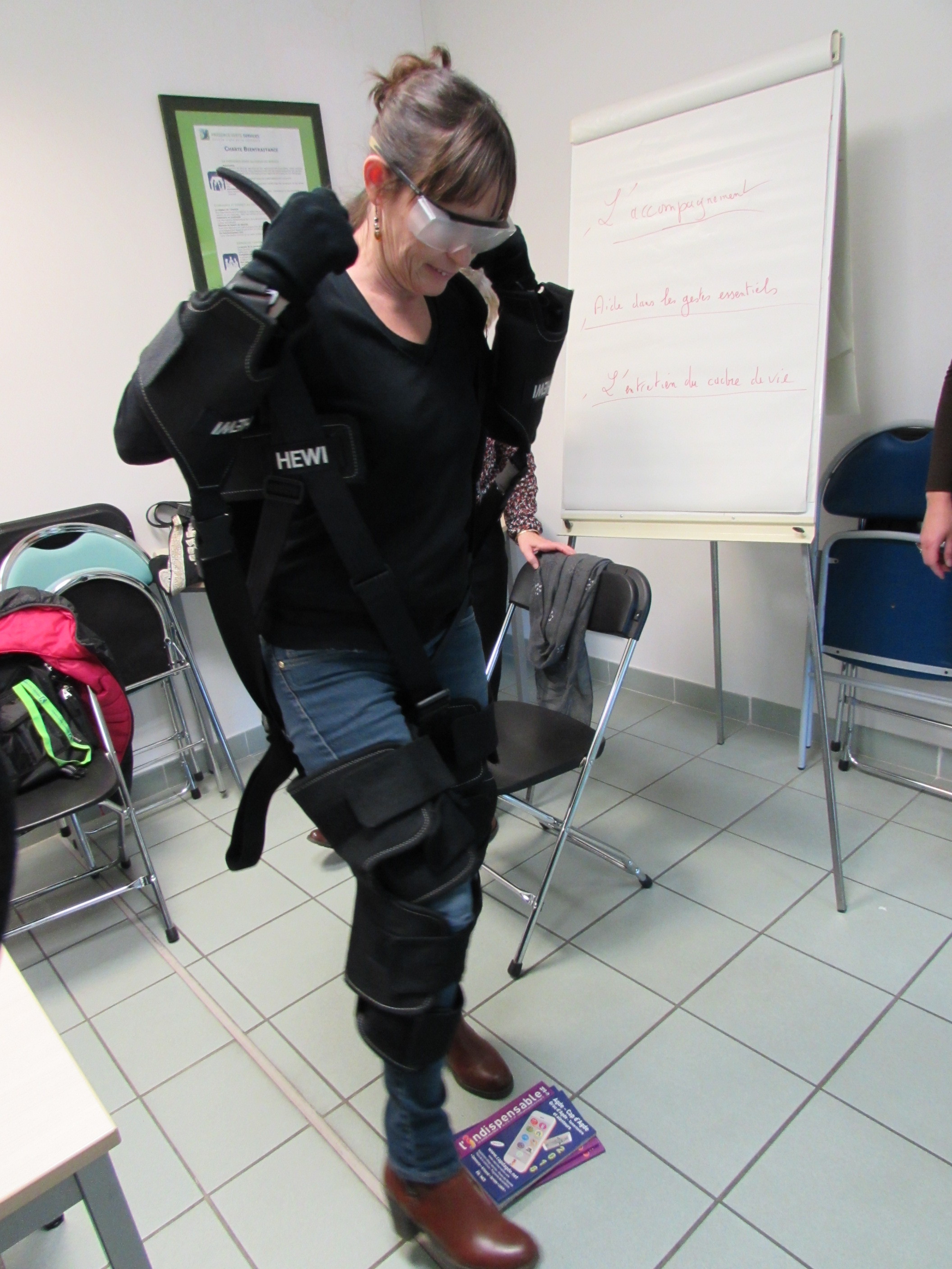 Tour à tour, nos Aides à Domicile participant à la FAAD (formation des Fondamentaux de l’Aide A Domicile), les stagiaires de l’ITEV (Institut Transdisciplinaire d’Étude du Vieillissement) et nos ergothérapeutes ont pu revêtir une combinaison de simulation du vieillissement et se « mettre dans la peau d’une personne âgée ».